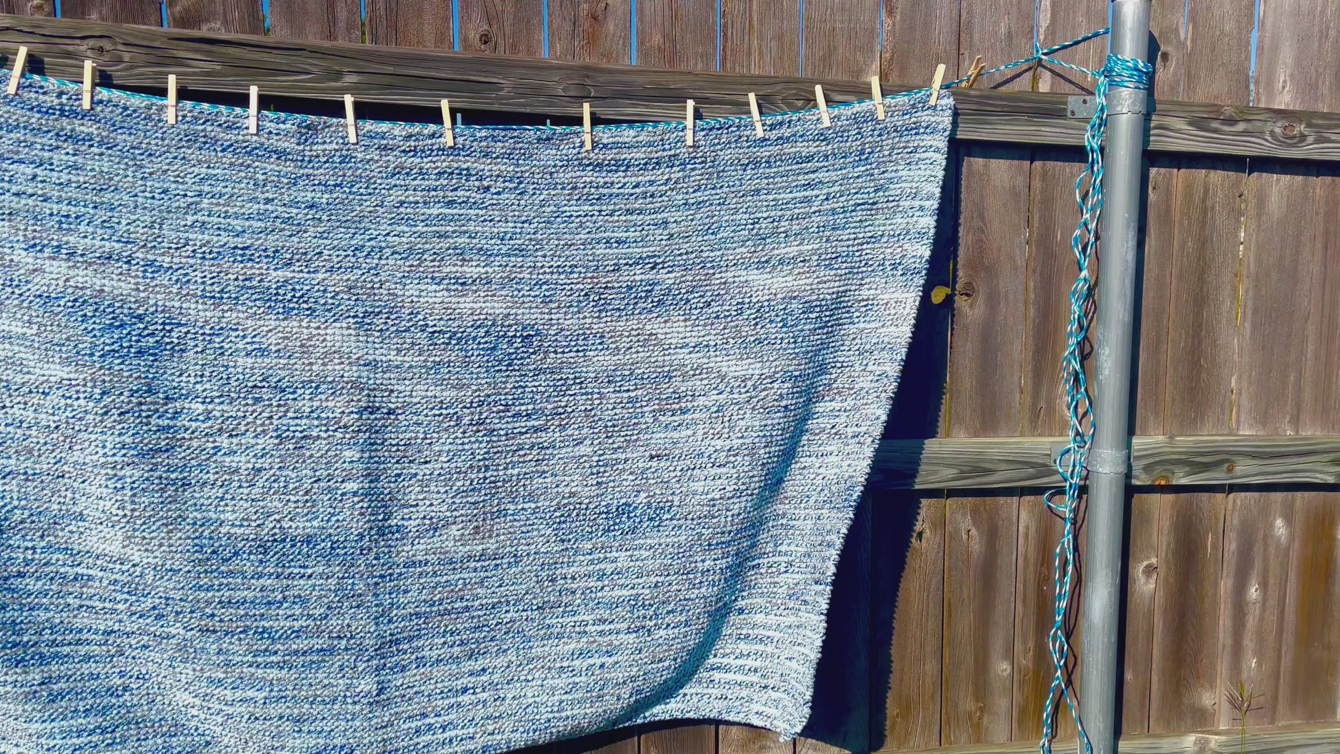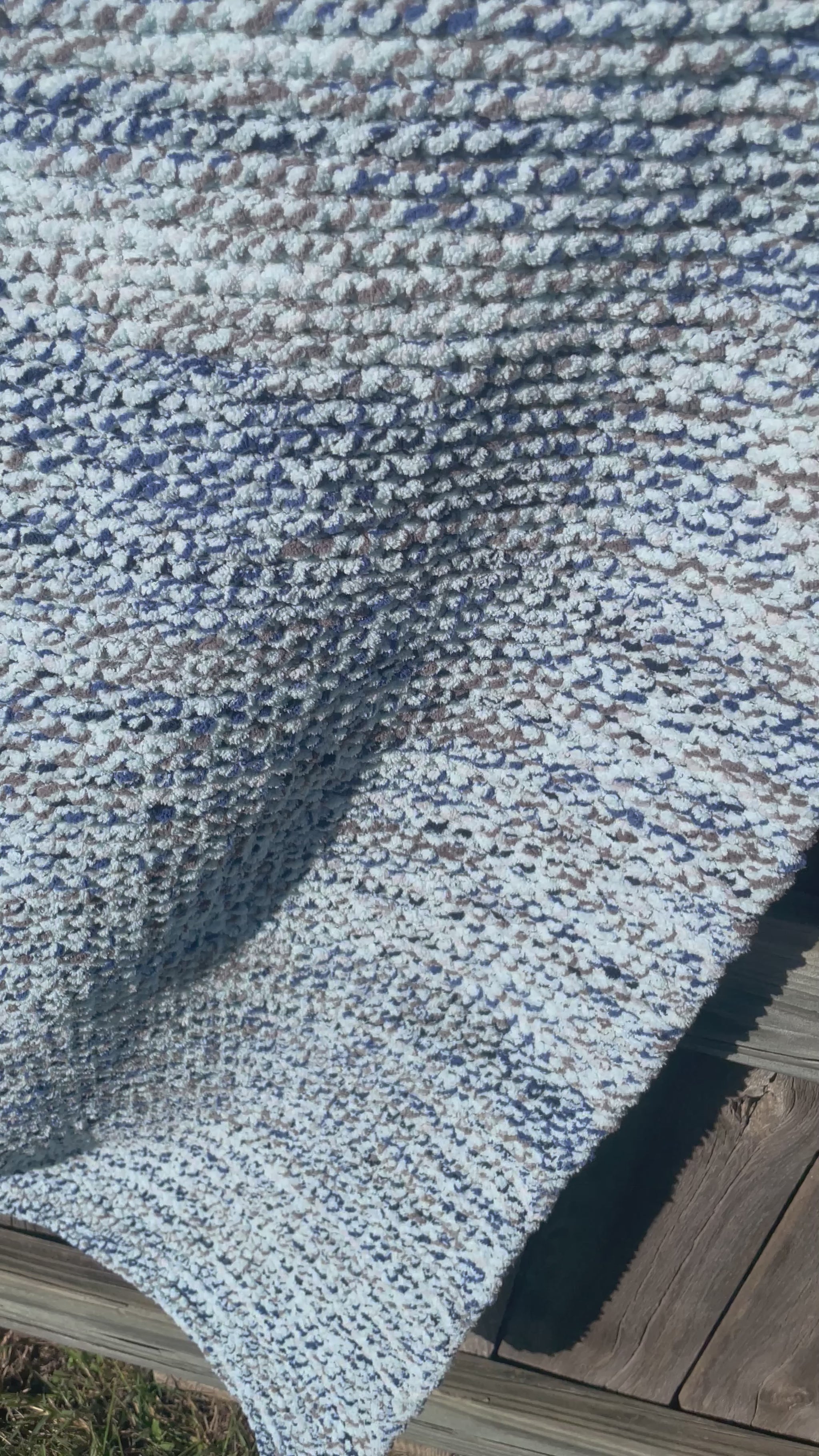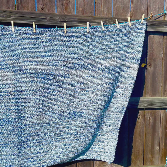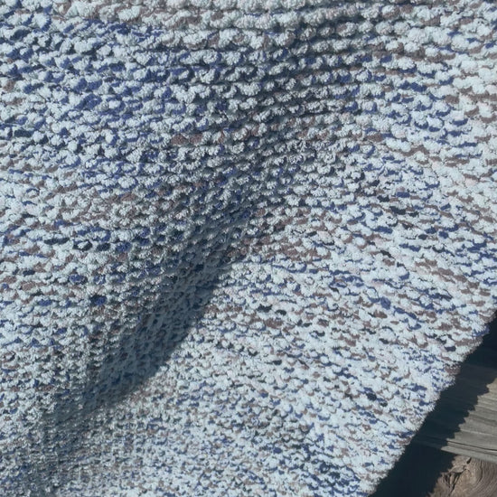 The Better Together blanket was handcrafted with love, knitted using circular needles. The blanket features a breathtaking mix of grey and shades of blue.