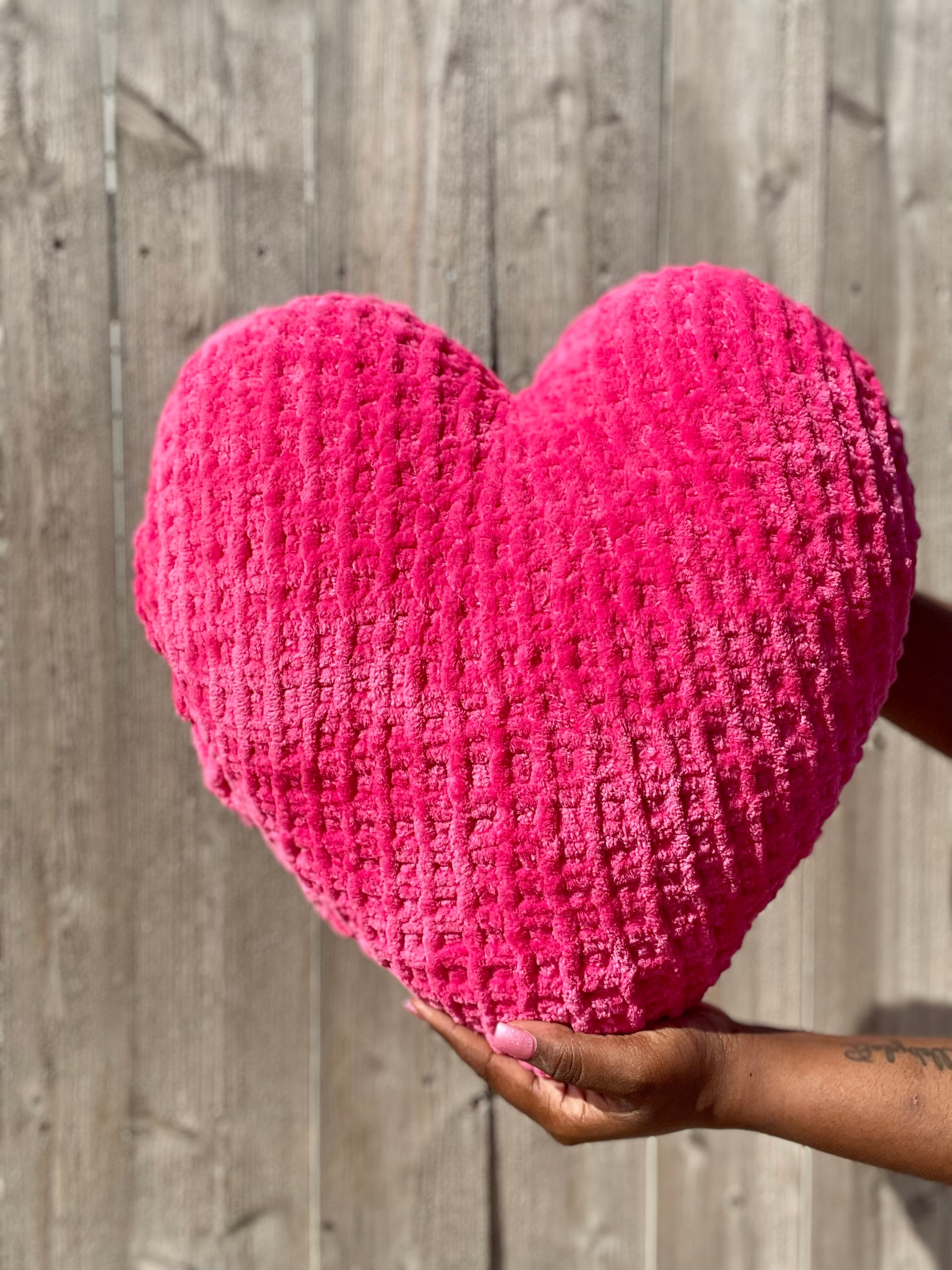 Hot Pink Knitted Heart Pillow (Ready to Ship)