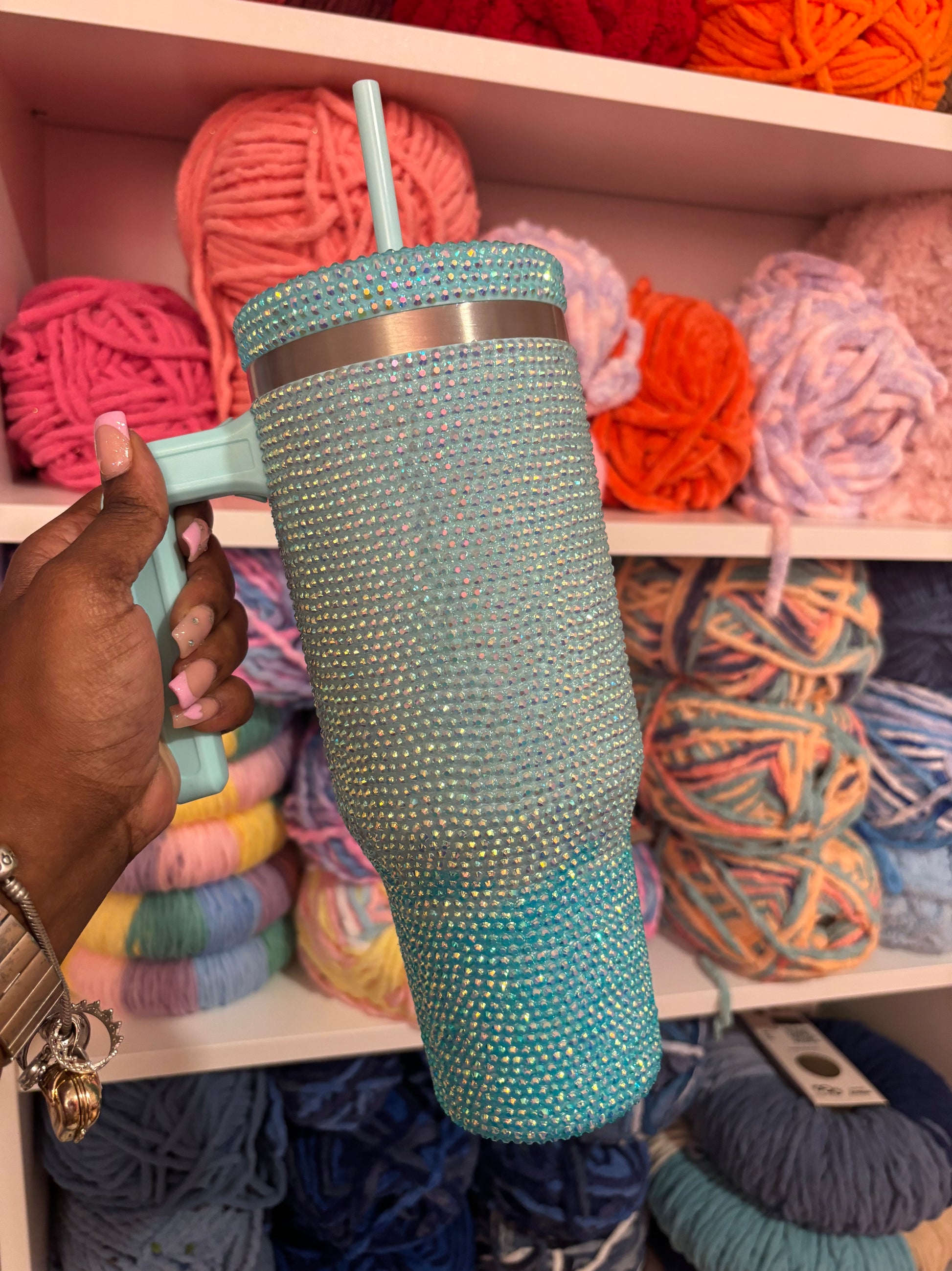 Lou’s Luxe Teal Ombre Cup was handmade with love by placing each individual stone by hand.