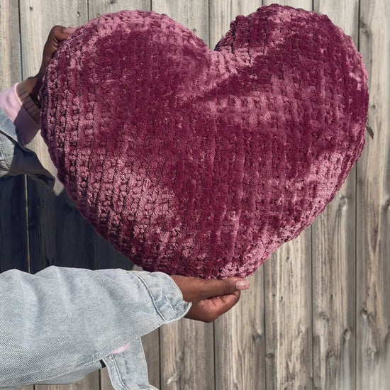 The beautiful Mauve Velvet Jumbo Heart Pillow was handcrafted with love. Perfect for any pink lover, this heart pillow can be used as decor or a super soft functional pillow.
