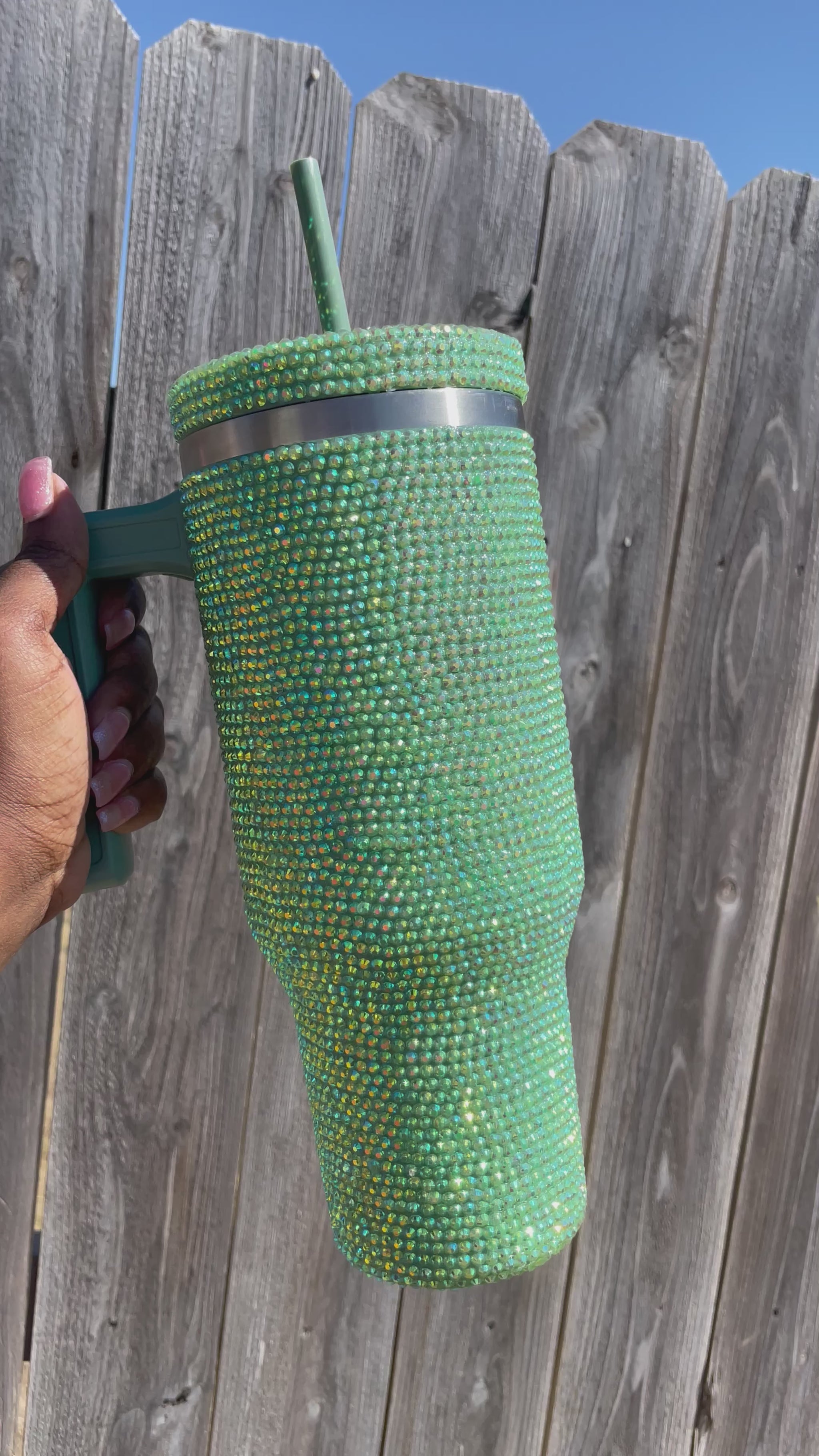 Lou’s Luxe Mean Green Cup was handmade with love by placing each individual rhinestone by hand.