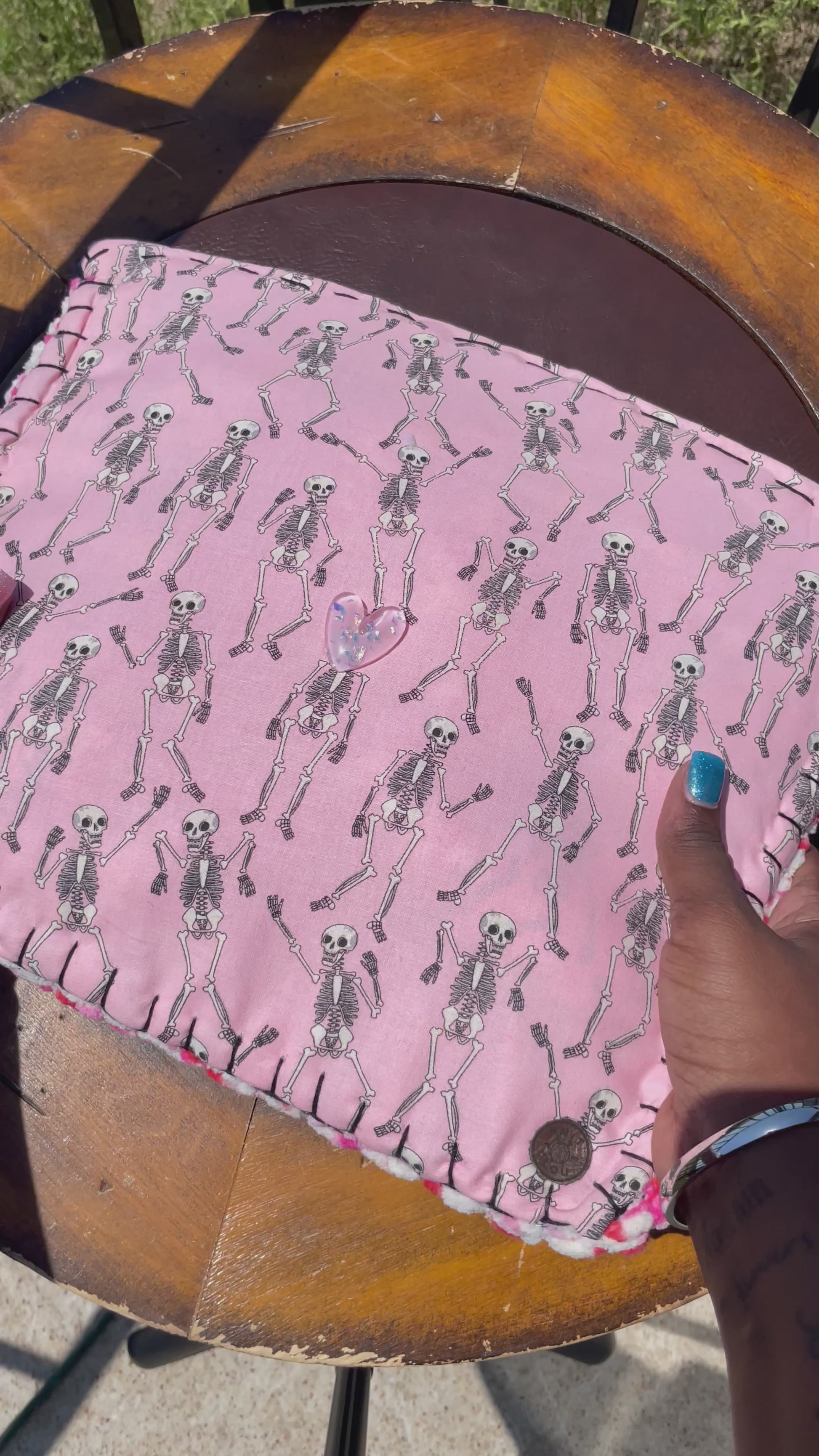 Handmade with love. This crochet laptop case is two sided, with crochet on one side and fabric on the other. The case includes a black zipper for secure carrying.